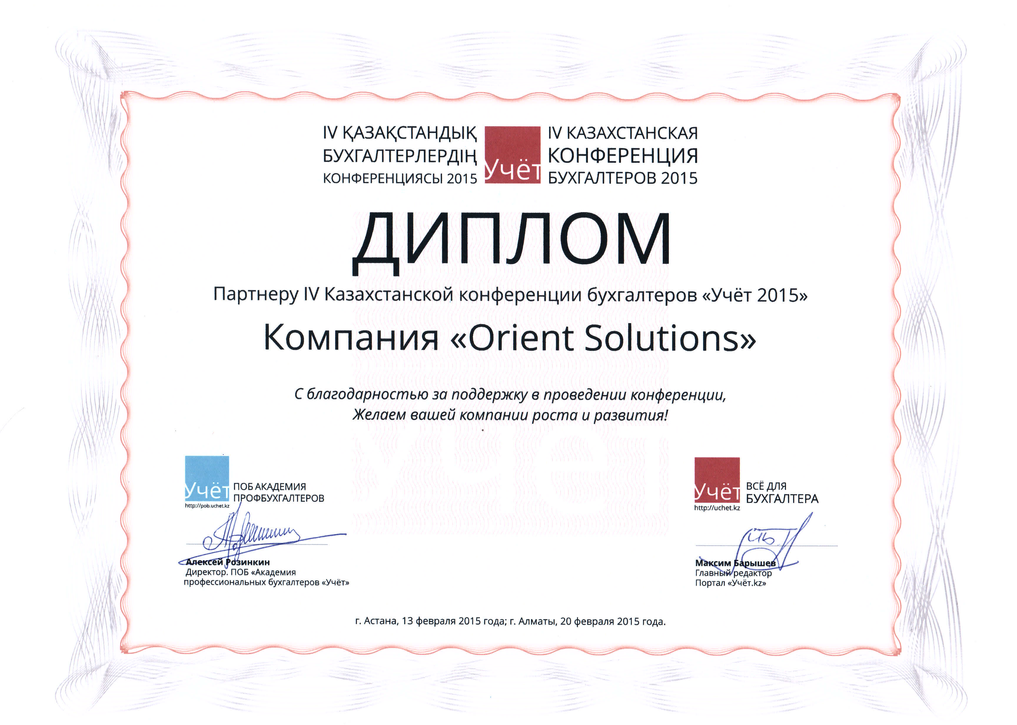 Компания "Orient Solutions" приняла участие на IV Казахстанской конференции бухгалтеров "Учёт.kz - 2015"