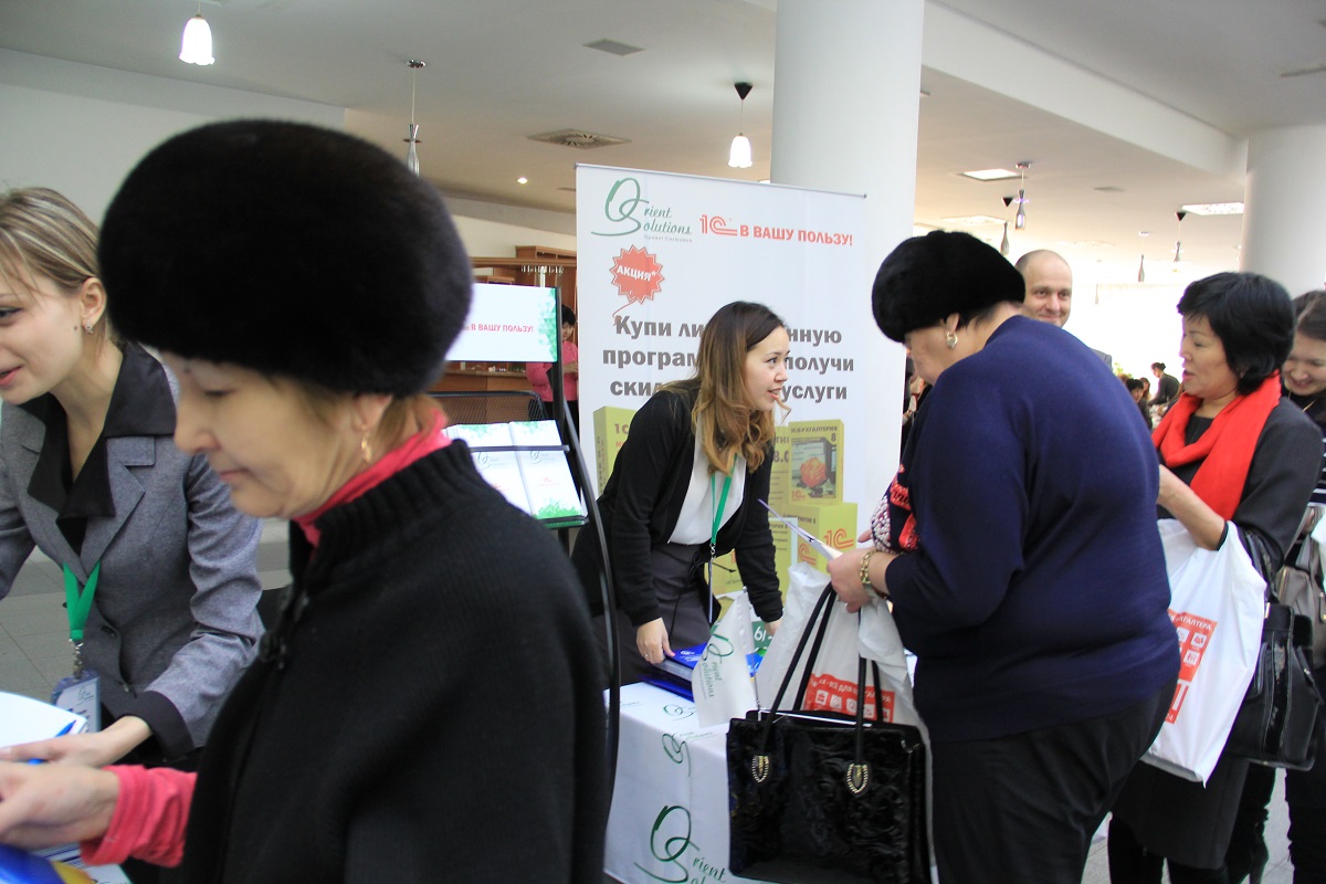 Наша компания «Orient Solutions», будучи с 2002 года официальным представителем фирмы 1С в г. Астана, приняла активное участие на выставке, в качестве партнёра Портала «Учёт.kz» - организатора конференции бухгалтеров.