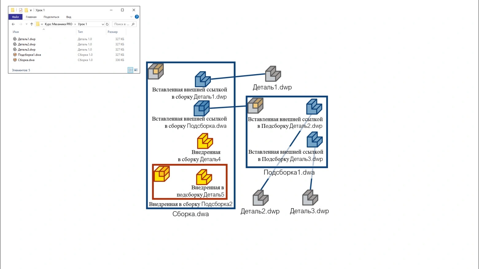 Оптимизированная работа с иерархией файла обеспечивает удобное и интуитивное управление деталями, сборками и блоками